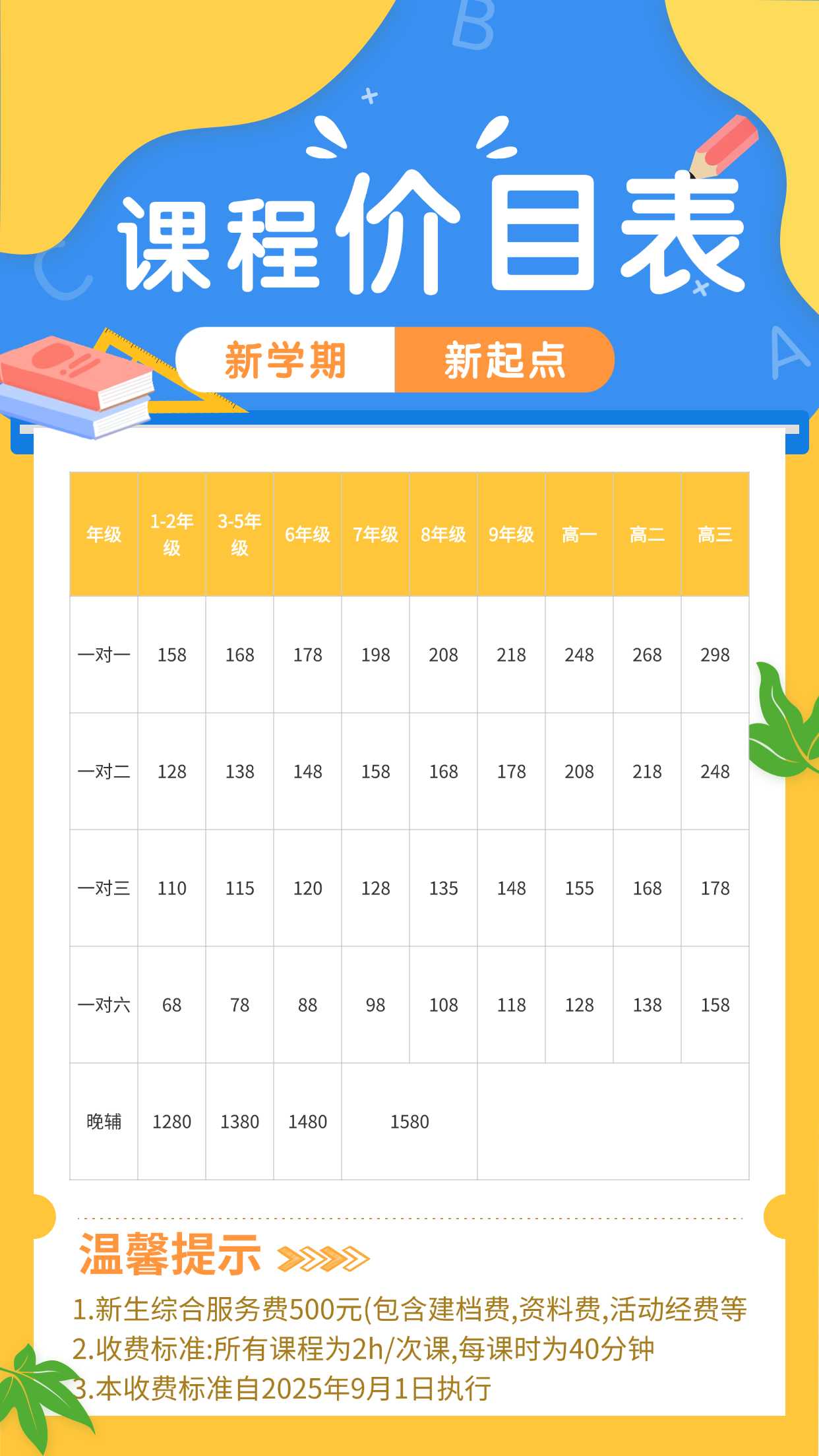 每课时设置为40分钟,每次课连续2课时,符合学生注意力规律,保障学习连贯性与吸收效率。