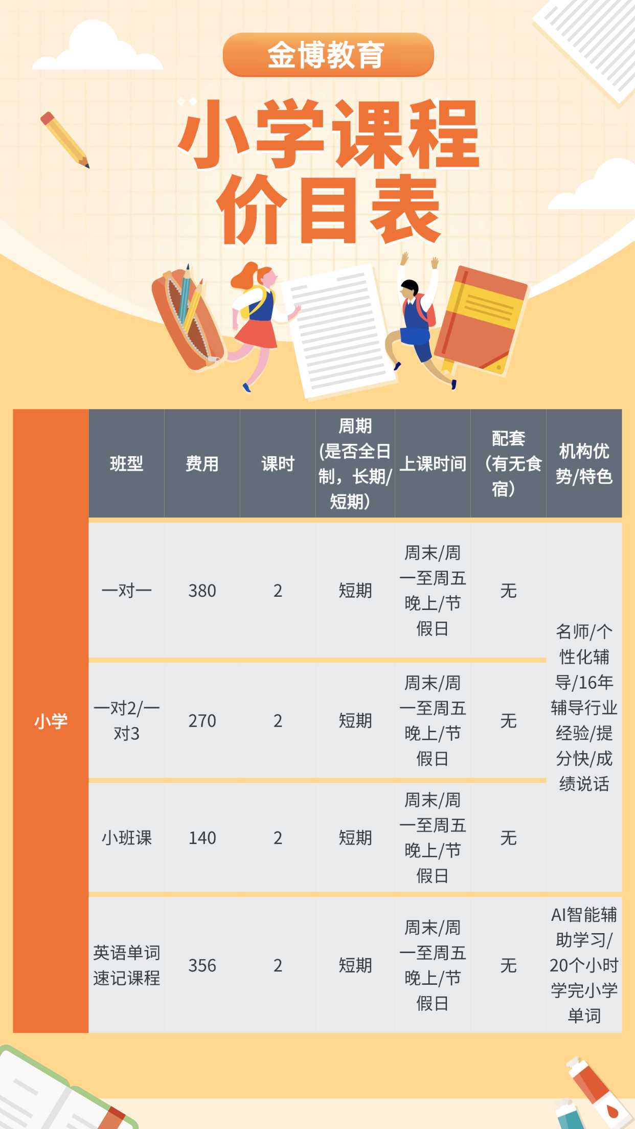 课程名称:广西小学一对二/一对三补习(金博教育)