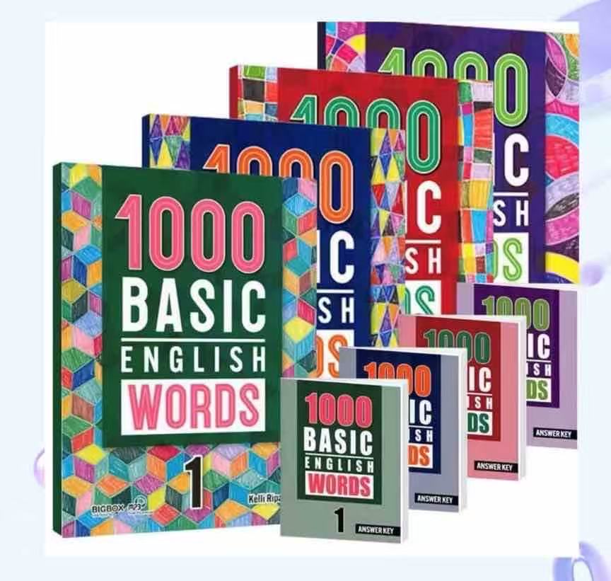 1000词这套书每个词有图片,有英英释义,有例句,每10个词有一页小的趣味练习。每20个词有一个20词组成的小短文,配合单元练习。是一个非常实用并且不花哨的词汇书。