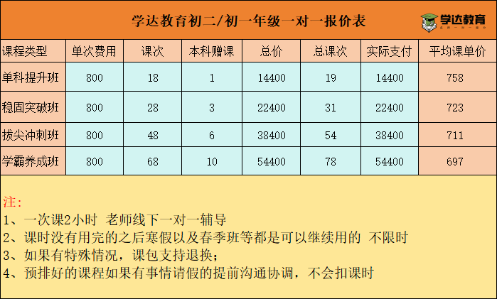 课程名称:北京初一/初二一对一学霸养成班(学达教育)