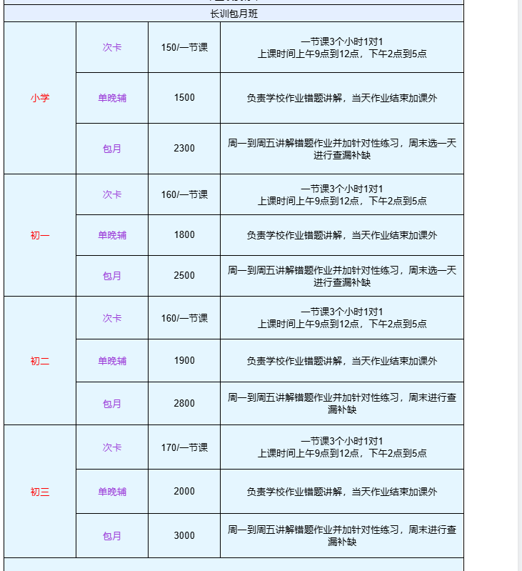 提供“次卡专项、单晚辅、系统包月”三类课程,满足从短期冲刺、日常巩固到长期提升的全场景学习需求。