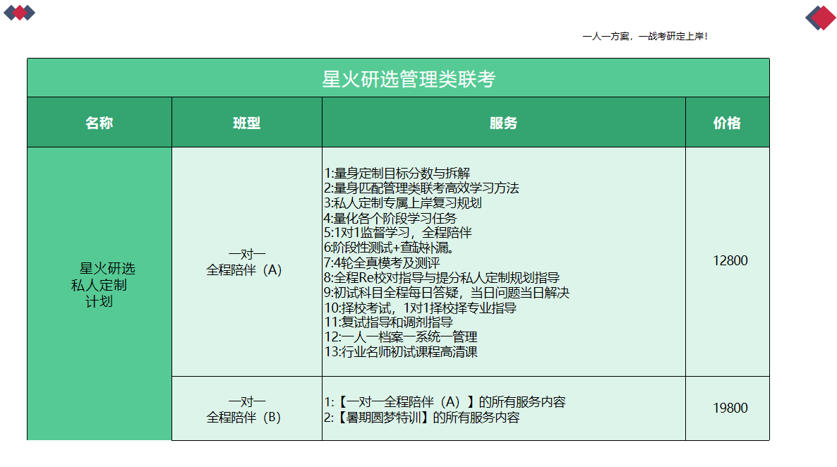 课程名称:天津管理类联考私人定制计划(星火学府教育)