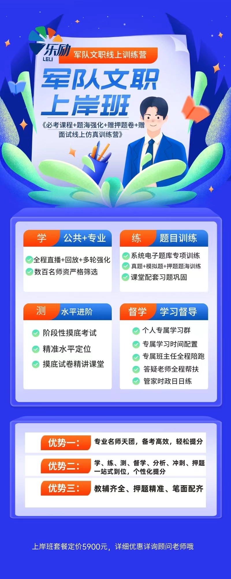 课程名称:全国线上军队文职上岸班(乐励教育)